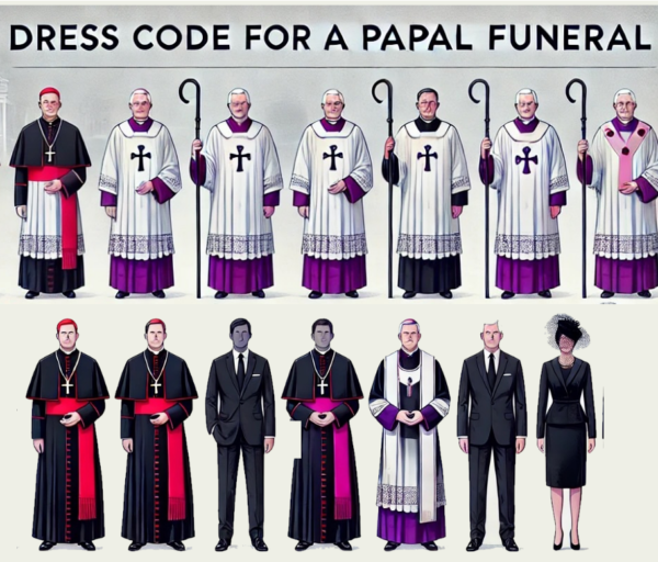 สำหรับพิธีศพสันตะปาปา จะมีบาทหลวงบางกลุ่ม เช่น คณะเบเนดิกติน หรือโดมินิกัน ที่สวมชุดเฉพาะของคณะตัวเองด้วย ซึ่งมีโทนสีต่างกันบ้าง
